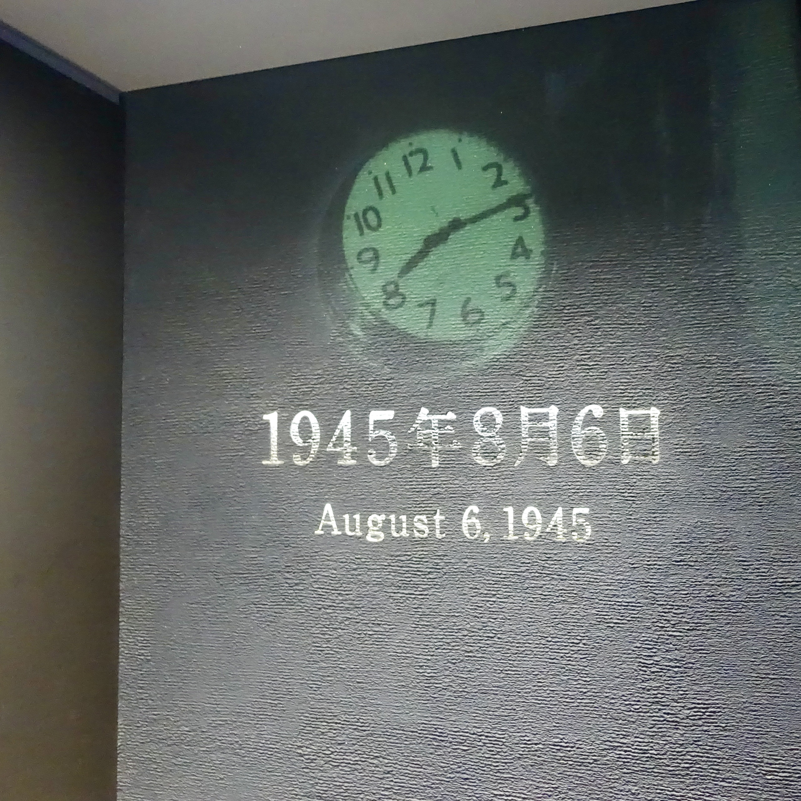 A Hiroshima, nous prenons la direction du Musée de la Paix. L’architecture est sobre voire austère. Lors de la Seconde Guerre mondiale, Hiroshima était un centre stratégique assurant la défense terrestre de tout le sud du Japon, ainsi qu’un important centre industriel. A l’intérieur du musée, d’abord un panorama de la ville et cette horloge qui marque les esprits avec la date et l’heure exacte où la bombe est tombée, le 6 août 1945 à 8h15. Puis, des panoramas de destruction, tout est rasé, reste le dôme, emblématique.
