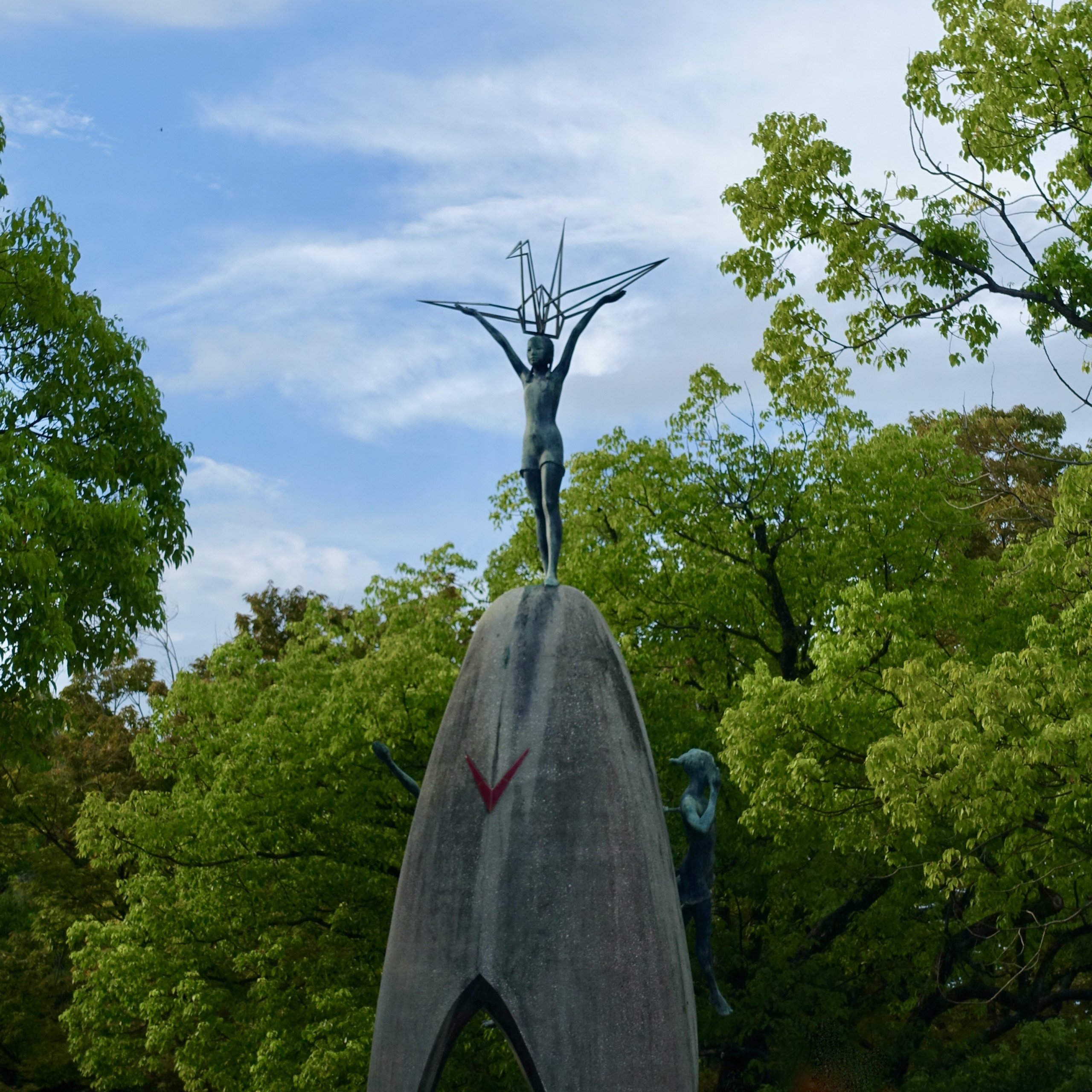 Puis, le musée s’attarde sur les essais nucléaires, de la bombe A aux essais après Hiroshima et Nagasaki. Il faut attendre 2017 pour qu’un traité des arrêts des essais nucléaires soit signé par 122 nations (seulement…). Mais quel avenir ? Je ressors assommée par le poids de l’histoire et nous longeons le parc jonché de statues commémoratives, les flammes de la paix, pour arriver au fameux dôme détruit. Un corbeau se pose là.
